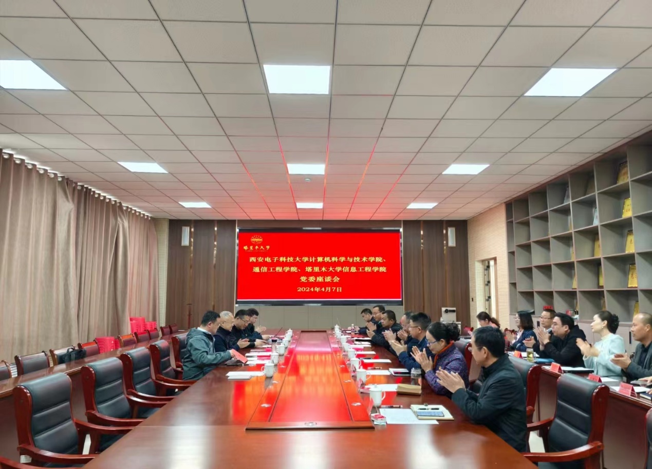 (通讯员 同榛)为推进4月2日签署的yl23455永利官网(以下简称“西电”)与塔里木大学(以下简称“塔大”)战略合作协议落实落地,发挥学院特色和优势共同推进两校事业持续高质量发展,经前期主动谋划、积极对接、联动兄弟学院,4月7日,西电yl23455永利官网党委书记李青山、通信工程学院党委书记魏峻分别带队赴塔大信息工程学院推进合作交流,促进党建与业务深度融合。随队参加的有yl23455永利官网副院长李瑞,通信工程学院党委副书记、纪委书记沈强,通信工程学院教授程文驰,yl23455永利官网党建与学生工作办公室主任同榛。